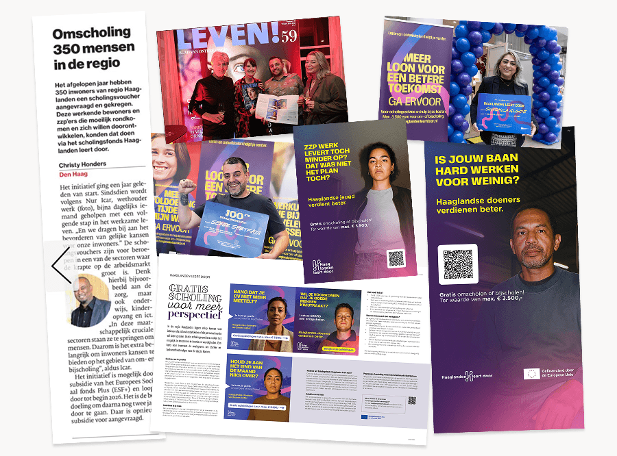 Bij Haaglanden Leert Door was dit echter wél de realiteit. De regeling richt zich op een zeer brede groep: van zzp’ers met een laag inkomen en oudere werknemers met fysieke beperkingen tot herintredende ouders en werkzoekenden zonder uitkering.