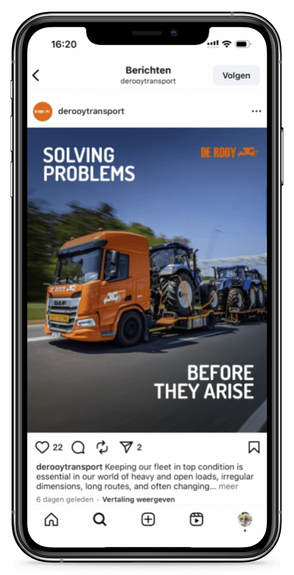 Daarna werken we een concreet voorstel uit met een conceptaanpak, planning en voorbeeldposts, zodat je precies ziet of we op dezelfde golflengte zitten.